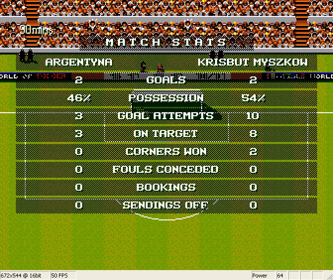 Krisbut postanowił wykorzystać brak kibiców i już w 2-ej minucie zdobył bramkę wślizgiem strzeloną przez Chudego. Argentyna panicznie szukała sposobu na defensywe Krusbudu ale nic się nie udawało aż do 39-tej minuty gdzie Dryblingiem Kuno Aguero oszukał obronę Krisbudu i potężnym strzałem w długi róg wyrównał stan meczu. Potem kilak akcji Krisbudu ale do przerwy wciąż było 1-1. Po przerwie obie drużyny szukały sposobu na zdobycie gola aż do 60-tej minuty gdzie szybką kontrą i strzałem ze skosa Lionel Messi zdobył już 11-tą bramkę w tym sezonie, niestety radość Argentyny trwała tylko 3 minuty bo po pięknej akcji z rzutu rożnego potężnym bananem i dobitki z najbliższej odległości Chudy doprowadził do wyrównania, Do końca meczu wynik nie uległ już zmianie. Mecz toczył się pod dyktando Krisbudu znacznie częściej atakowali ale to Argentyna miała powody do radości bo na tylko 3 strzały zdobyli aż dwie bramki.
