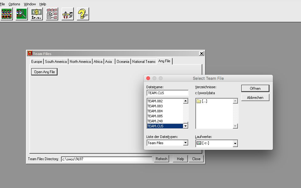 How do you mean that? Try SWOES.exe on Amiga on PC? How should I make a repack (how is that possible)?In that case, try SWOES.exe , and make a repack of the whole data folder (after editing custom teams) for Amiga usage!