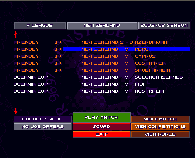 I completed the friendlies, next up the Oceania Cup. Have fun!