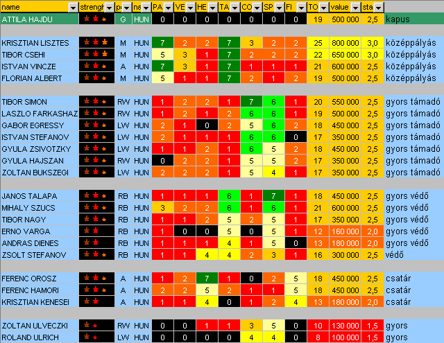 Rögtön vásárlásba kezdtem azért. Az egyetlen értelmes játékos a Honvéd legértékesebbje, Csehi Tibor volt. Kiválóan szerel (T=7), jól passzol