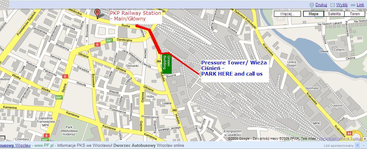 You should be coming from the main railway station(Dworzec Glowny PKP) with the road painted red in the map.