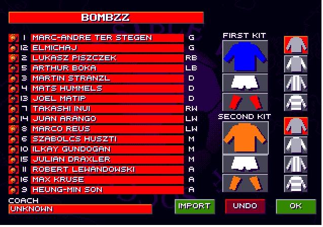 I will play with Redhairs Retro Kickers (Brazil). (Already on disk). Tactics: Will use Playas.