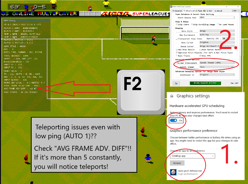 This next part is not so much about Swos 2020. For general performance I still have some issues even offline doesn't matter if it is Aswos or 2020. I have tried many nvidia and monitor hz settings for optimizing gameplay feeling. I run a 144hz gaming monitor using displayport to gtx 970. Should be more than enough for smooth gameplay, but it doesn't seem so. In example i tried lowering monitor hz to 100 playing amiga at 50hz, but this seems to cause small "slow downs" or lags. The best performance I can get is PC Swos (2020) @ 70 fps on 144 monitor hz.