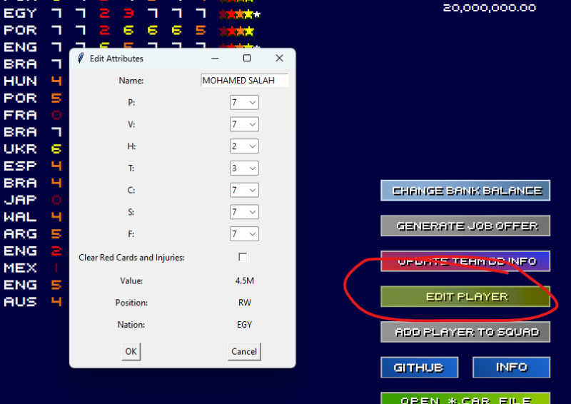 I am trying to edit a career save (wanted to remove an injury, but would curious to test some changes to attributes of players)
