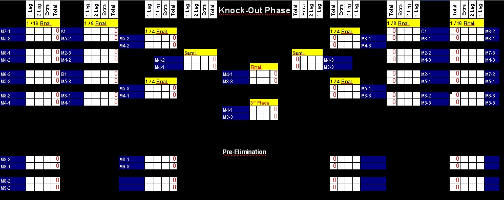 2 runda KO - Od miejsca 3.3 (najgorszy bilans wsrod trzecich miejsc) w dół tabeli (optymalnie to bedzie 16 graczy).