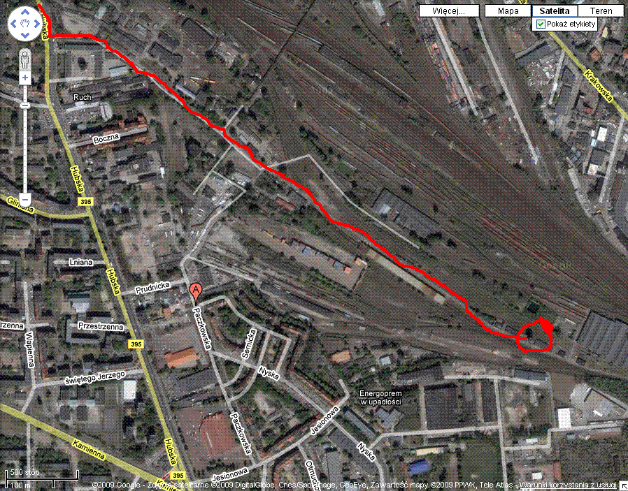 Po pierwsze kierujcie się od Dworca PKP GłÃ³wnego po dordze zaznaczonej kolorem czerwonym na mapce. Wjedziecie w ulice Hubską i po lewej stronie będziecie mieli Zielony budynek Ruchu.Przd tym budynkiem będzie uliczka w lewo. To będzie prawie, że dzika droga