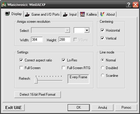 The display settings in Total Pack is limited to setting the resolution only, unlike WinUAE which has plenty of options.