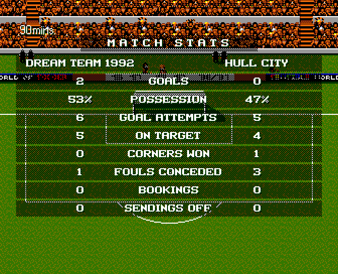 Pierwsza połowa była bardzo dynamiczna i obie drużyny miały okazję by pokonać bramkarza przeciwnika. W drugiej połowie również trwała walka akcja za akcję jednak dwa razy bramkarz Hull spisał się poniżej oczekiwań. Gracze Hull również strzelali bardzo flegmatycznie, nie sprawiając większych problemów z tzw. ,,ukosów bramkarzowi Dream Team 1992.