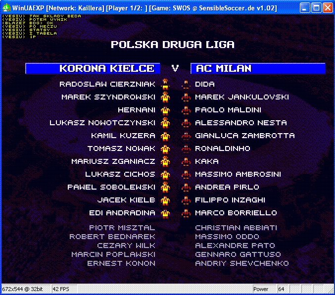 Korona Kielce - AC Milan 2-0. Następny mecz Zapora Przeczyce - CF Syrom. Screeny da Blazej a relacja mojego autorstwa wkrótce się pojawi (najpóźniej do jutra do 24