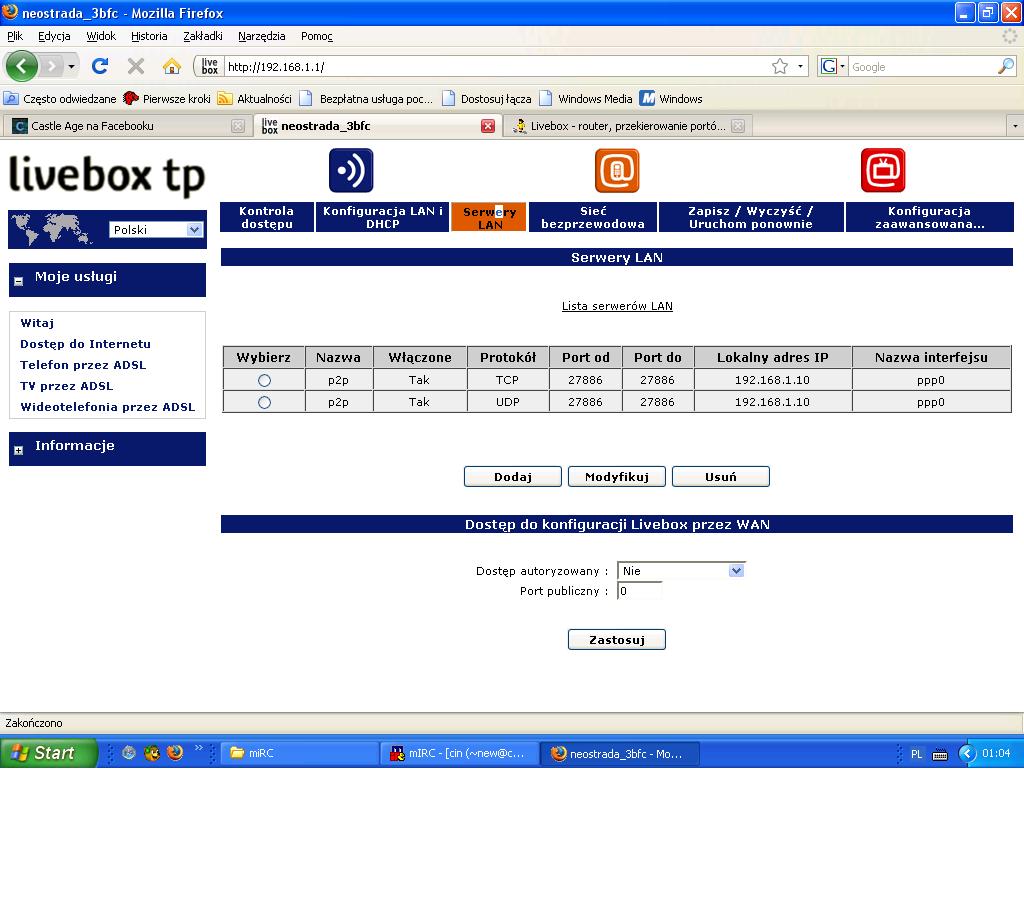Replied by Wodiczko on topic Re: Livebox - router, przekierowanie portów kaillera