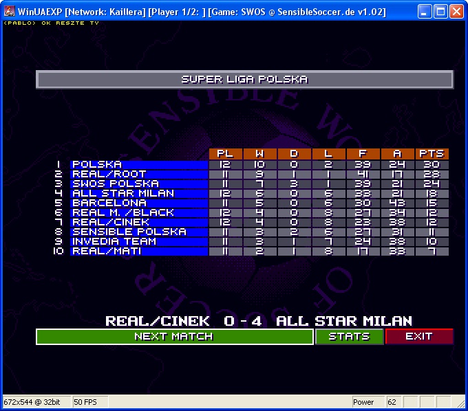 SWOS Polska (Lobo) - Barcelona (Wodiczko) 3-0