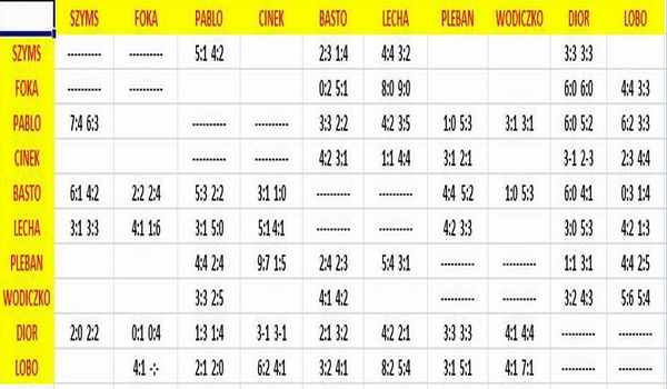 Osobne DWA mecze są np. PABLO SZYMS oraz osobno DWA mecze SZYMS PABLO