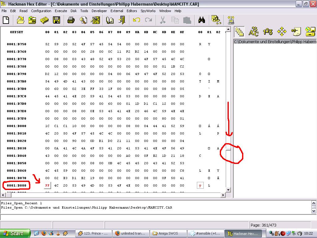 Replied by hairytoes on topic Re: How do you find the offset number for hex editing please..