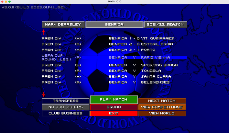 I am experiencing a career crash after 2 games in my SWOS version running through Cross Over or paralell desktop. Version 2 and 4 both crash when i try to play the 3rd game of my career.