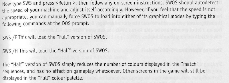 Ok, thanks for explanation. But without /f switch in my opinion also games looks ok. Ech, I wish coders of PC version added in past some /LikeOnAmiga switch or /NoLamePhysiscFromAss switch. Then game will be work exacly like on Amiga and we have nice IPX support with SWOS++ ;)
