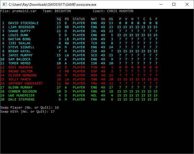 So I have completed my testing of the updated SWOSCARE career file editor. This has been done using SWOS++ v1.9.2.1 beta release with the 2016/17 database through DOSBOX on Windows 10.