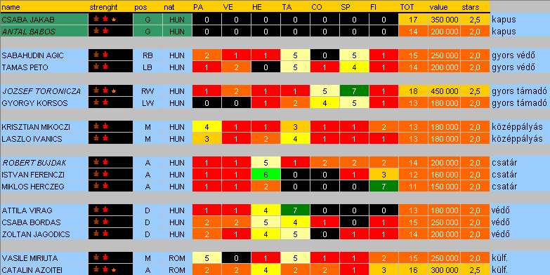 Hajszánt és Stefanovot pls cseréld meg a padon, de amúgy ok!