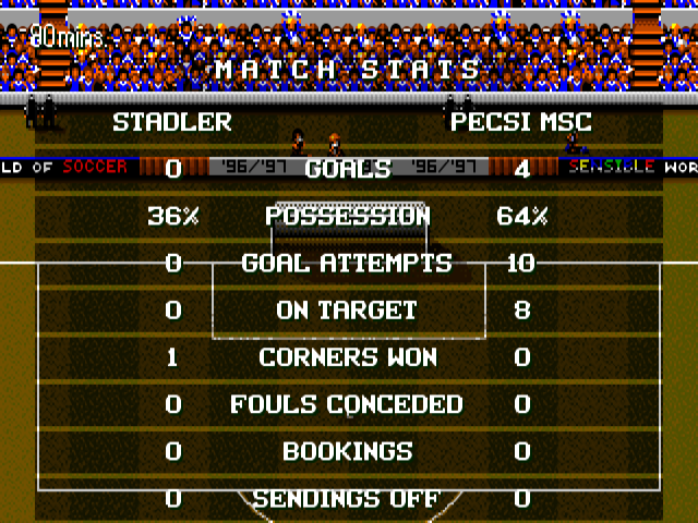 Nos a taktika úgy tűnik bevált, a mellékelt statisztika jellemzi, hogy mennyi esélye volt az akasztóiaknak. (Az 1 szöglet úgy jött nekik össze, hogy az egyik játékosounk véleltenül hátrafelé rúgta el a labdát). Tököli 4-es vágott, csókolom.