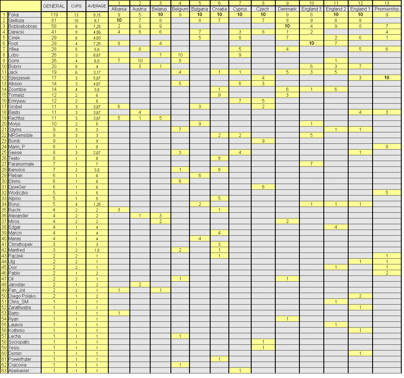 New online tournaments series. Grand Prix tour all over the worjd. We start in Albanian league, then Austrian and so on. Worst ranked player has the right to choose first team. Plus points earned in the tournament. Summary and standings can be seen in this thread here.