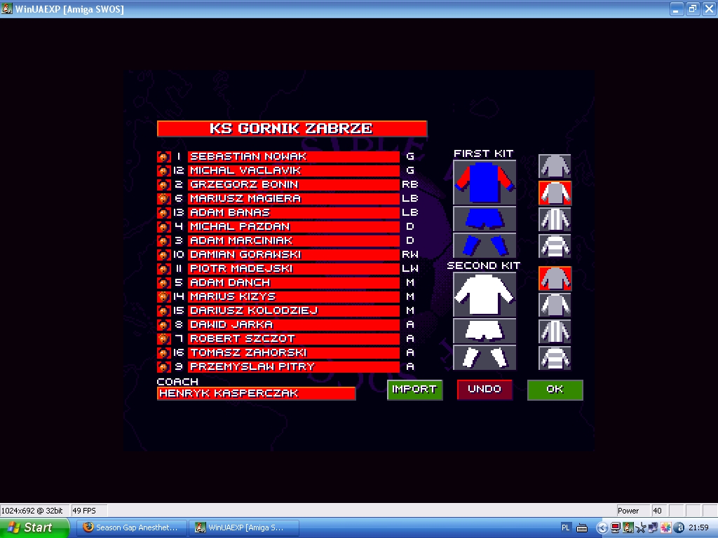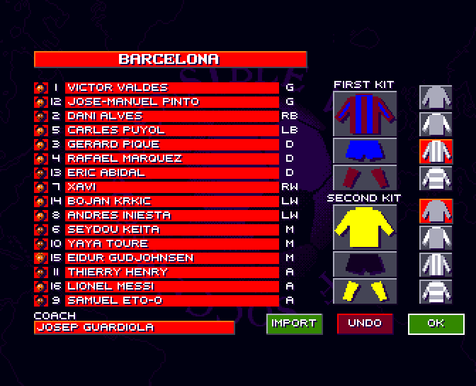 Uzywac bedziemy druzyn wyedytowanych z orginalnych, znajdujacych sie w SWOS 96/97. Parametry graczy pozostaja niezmienione!