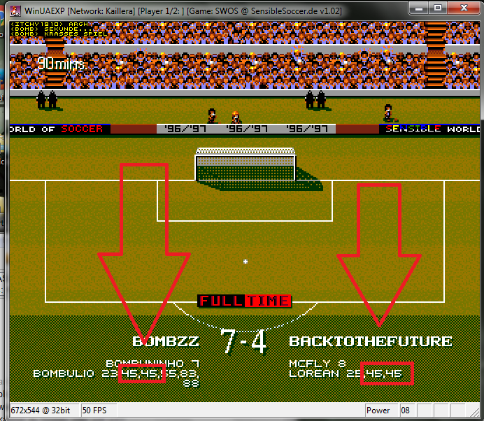 In our DSL match, Itchy and me managed to score 4 times in the 45. minute. crazy halftime finish for a crazy game ... ;D (see screenshot). I think 4 goals in the last minute I never had in a game with myself.