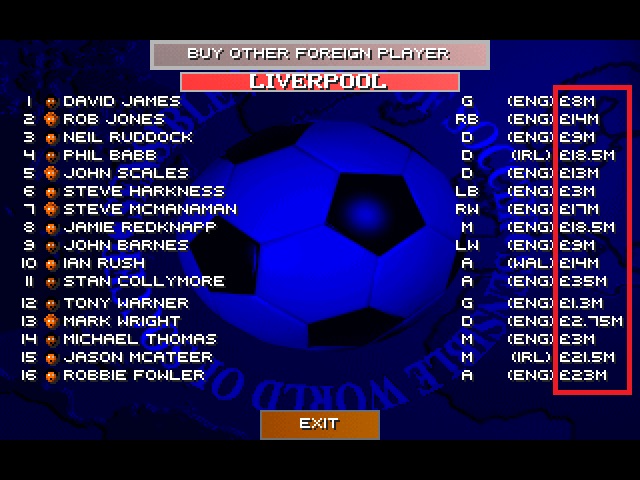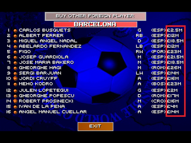 Most expensive football transfers were much lesser in the mid of 90s and SWOS doesn t follow the changes. I consider it a problem.