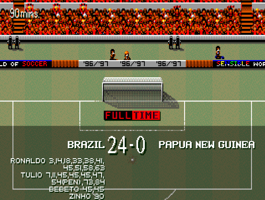 I've tried as well and this is my personal record so far. It was 18-0 at half time so breaking the record was within range. But scoring no goal(s) for 5-6 "ingame-minutes" is punished very hard, so I came close to Playa's 32-0 - but didn't reach or beat it. Will try again soon though :D