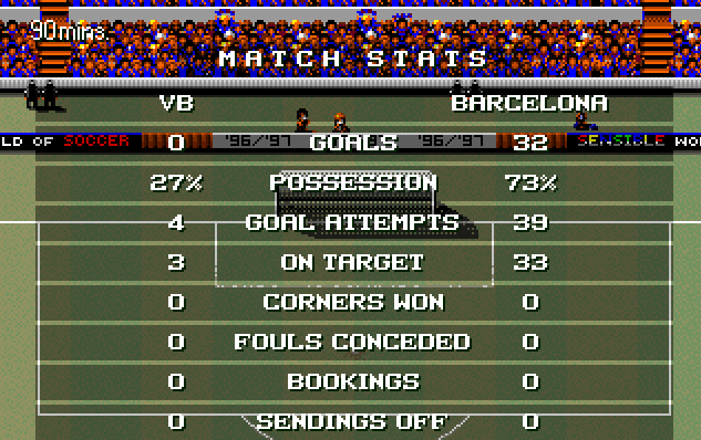 Another lucky circumstance is that the Cpu never (or nearly never) makes a long shot in your half from kick-off!