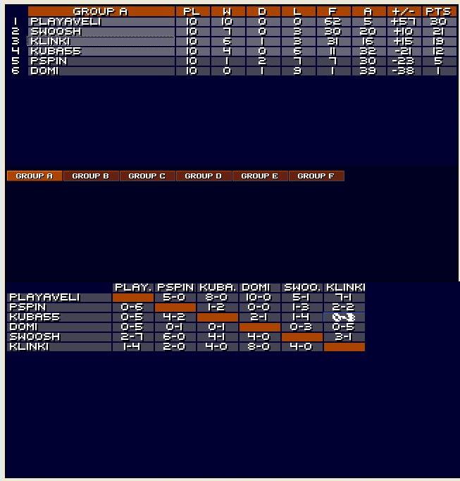 GROUP A FINAL STANDINGS + RESULTS