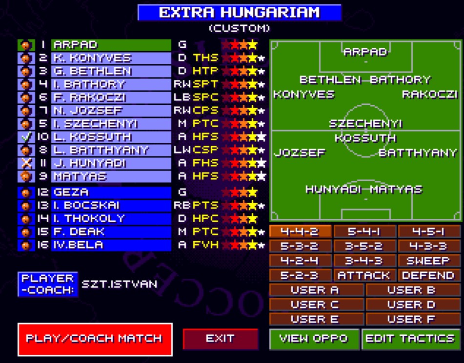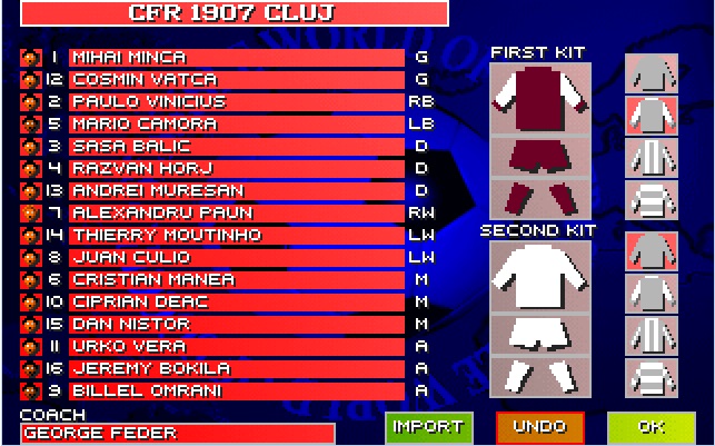 - transylvanicus: team name: CFR 1907 Cluj, base team: Brazil 96/97, tactics: standard 4-4-2
