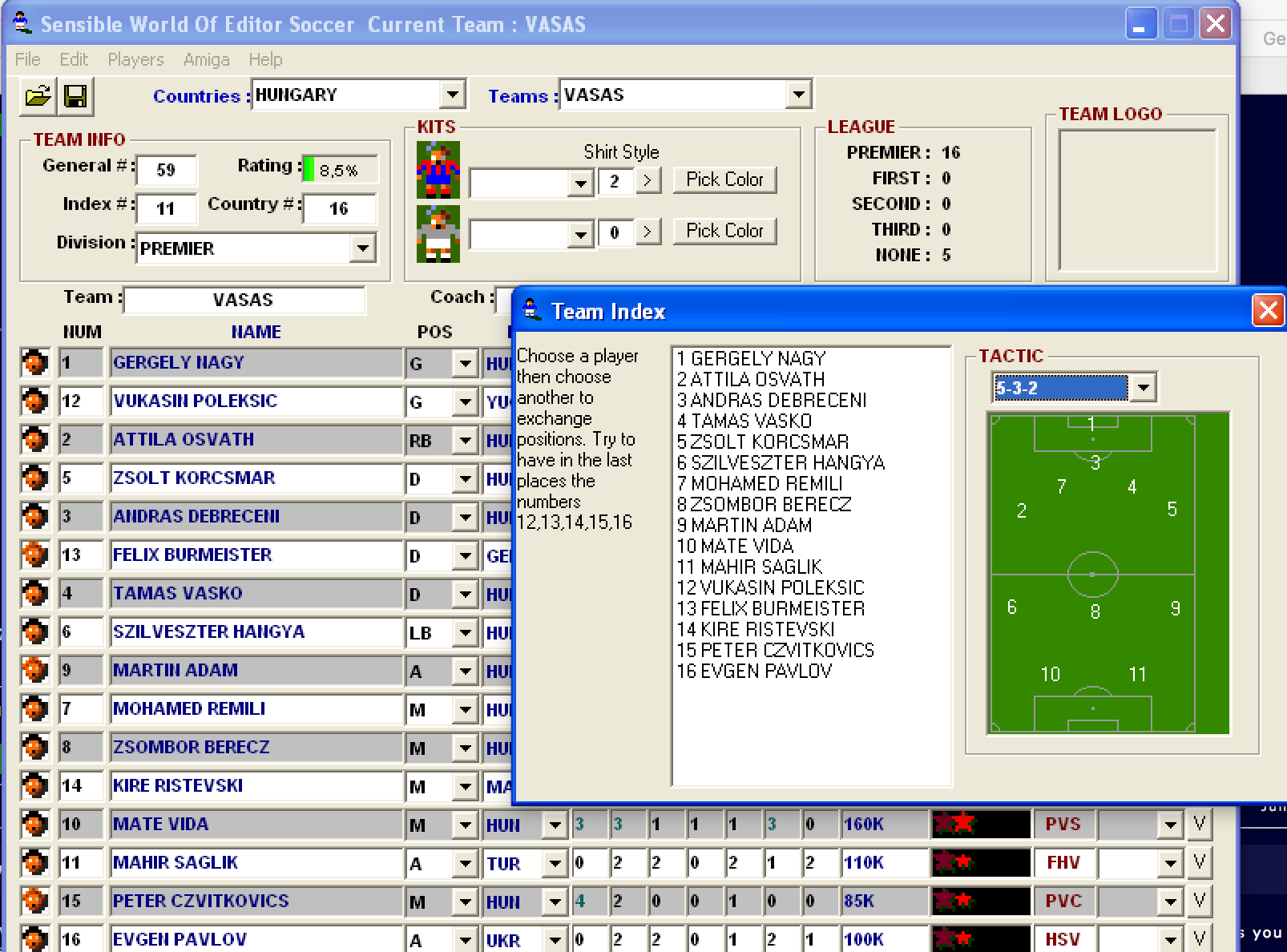 All data about the Hungarian league + Hungary are 100% ready, and checked by Hawkz too. I have two days to load to SWOES, manually add the shirt colors, and it will be finished.