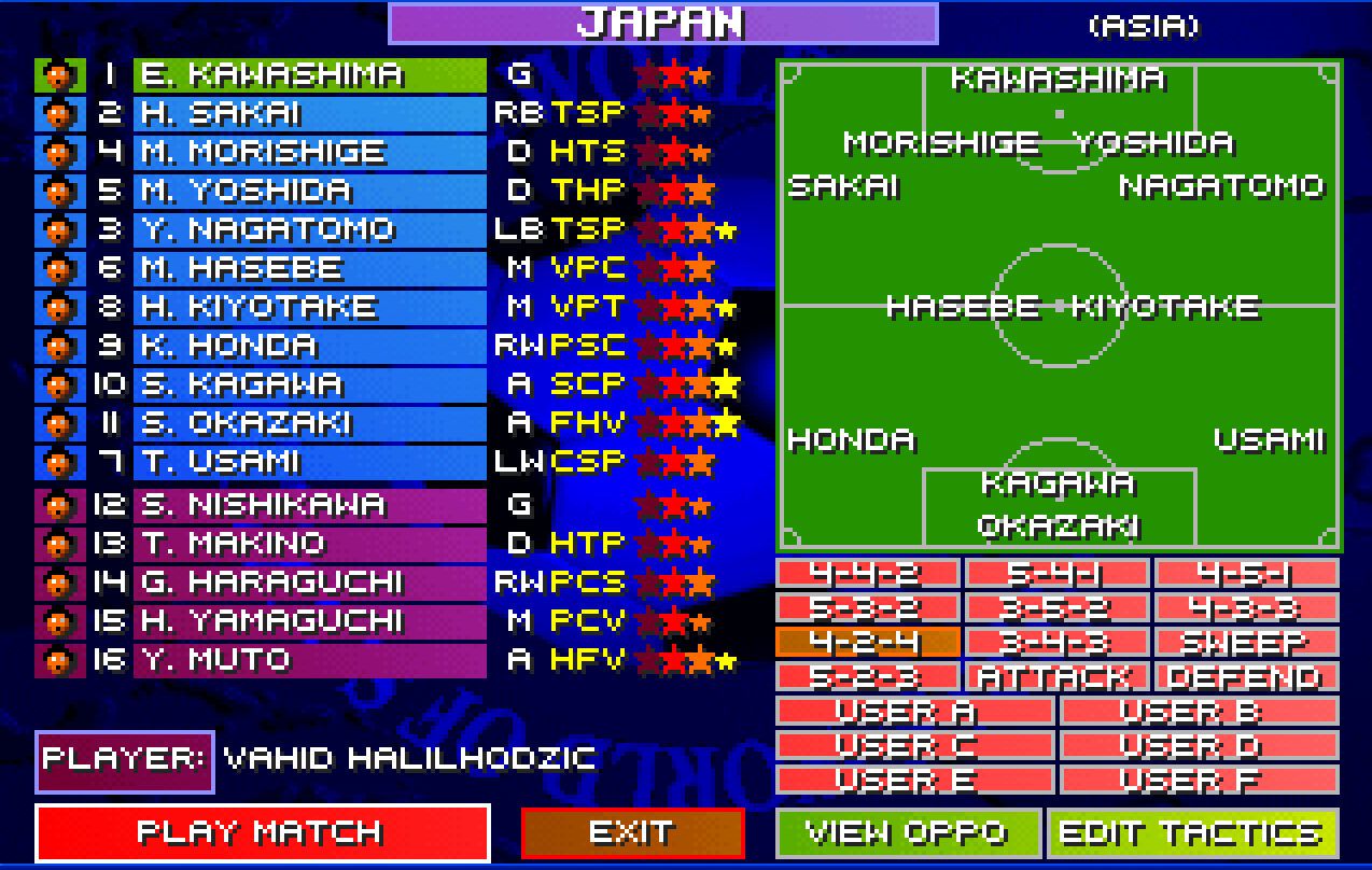 You see, real life 4-2-3-1 tactic has been transformed to 4-2-4 in SWOS. Works very well.