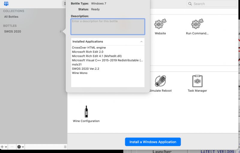 I added the screen shot of the bottle. I tried it in windows mode and it still crashes. I will have to keep trying different setups. Thanks for trying to help.