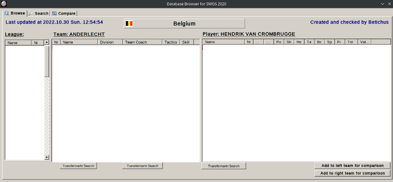 At first I thought the lists were empty, but when I click in it, I can see the selection changing. It looks like an opacity issue, or a white rectangle appearing on top of the rows. Events seem to work fine (eg: double-clicking on a player opens your browser on the related Transfermarkt page), it really "just" is a rendering issue.
