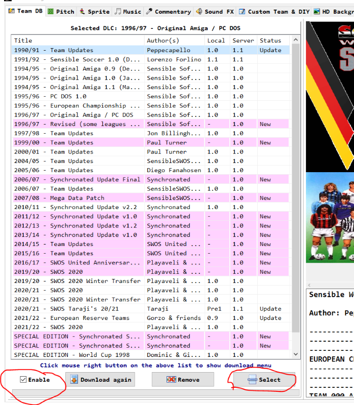 Team database & Career Mode is set to default 1994, is that the earliest as I can see db 1990? Anyway it is not selecting 1994 it's selecting the 2021 team db I have set as enabled.