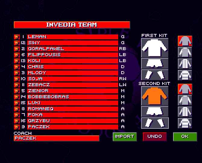 3. Jeśli chcesz stworzyć drużynę ze swoim składem, której nie ma w aktualnym Save disku to stwórz ją i prześlij mi PRINT SCREEN ze składem (tutaj na forum jako załącznik lub mail)