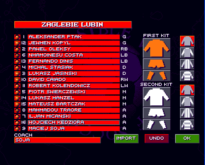 Przesłałem dzemowi drużynę którą będę grał na PC i Amidze (Amiga All Stars), a na xboxie - Italy.