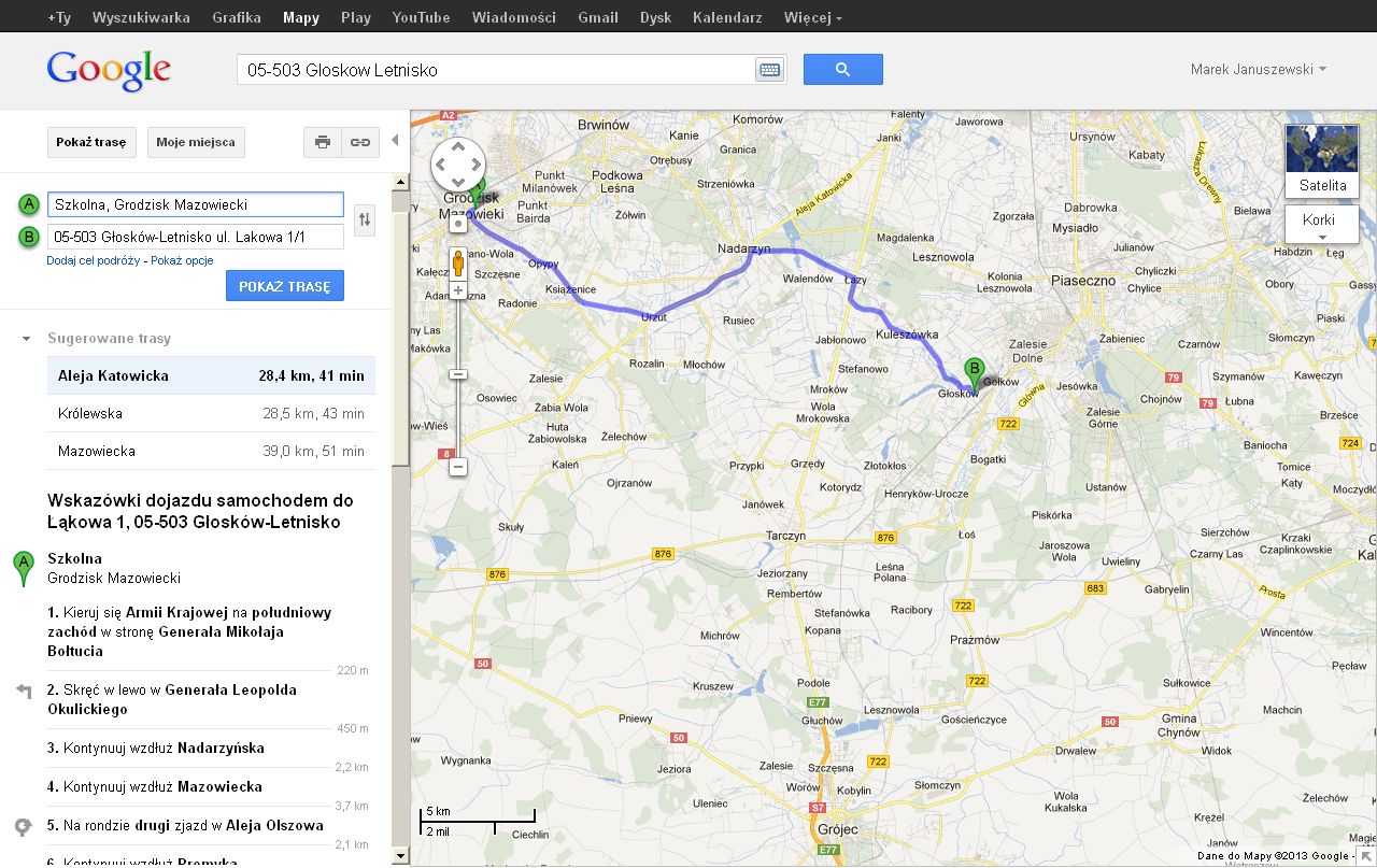 I added a map with route from Grodzisk Mazowiecki, Szkolna street to Gloskow Letnisko, Laskowa street. It is not so far but i dont think there is easy way to get there without a private car (especially if you want to go just after tournament).
