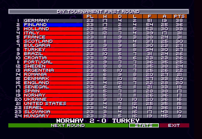 Best 24 teams played once against each other,I got 17-2-4 record and 2nd place. Two best played final and I beat Germany 5-1 and won tournament. I think I am weak player so far but happy to win all other computer teams in that own tournament. Here is picture of that